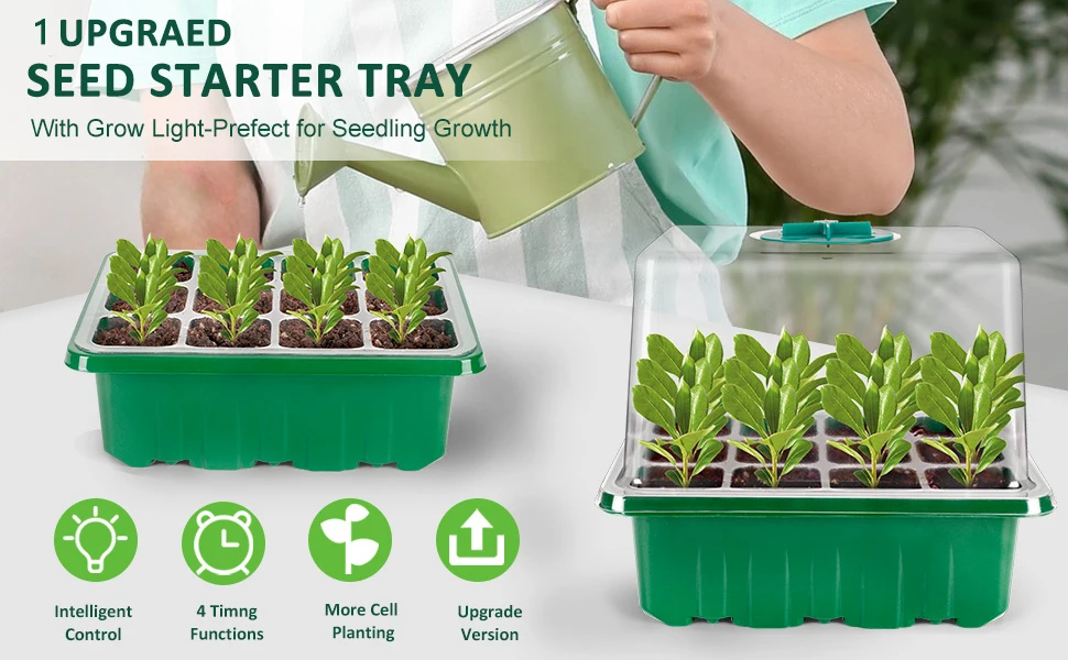 Cúpula de Umidade Ajustável: Controle o microclima perfeito girando a válvula superior. Esse sistema retém a umidade exata que as sementes precisam nos primeiros dias de vida, evitando que a terra resseque.